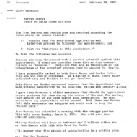 A memo on Warren Hearle by Gerry Thompson reporting to Governor Atiyeh on February 28, 1982. This report includes a public upheaval in the form of five letters addressing Warren Hearle's insensitivity at an appointment. Jane Huston is in charge of meeting with the unhappy parties to provide reassurance. This is one document from a binder containing selected daily reports to the Governor, which was compiled by Gerry Thompson.