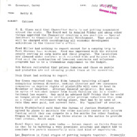 A memo prepared by Betty Maudlin, an assistant in the Oregon Governor's Office, reporting to Governor Atiyeh and Gerry Thompson, on July 27, 1982. The report covered topics including: a new Special Assistant to Chancellor for Economic Development position; Fort Stevens camping ground; lawsuit to deprive rights of plaintiffs; the Bureau of Justice Statistics interim funding; and the long-standing policy in response to cannery strike. This is one document from a binder containing selected daily reports to the Governor, which was compiled by Gerry Thompson.