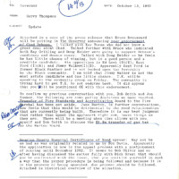 A memo prepared by Gerry Thompson reporting to Governor Atiyeh on October 13, 1982. The report covered topics including: a press release to The Observer; the Fire Standards and Accreditation Board; Douglas County Hospital Certificate of Need; the Oregon Serious Crime Survey; the Housing Division and Housing Council; SB 985 contract modifications; and the Board of Forestry lands. This is one document from a binder containing selected daily reports to the Governor, which was compiled by Gerry Thompson.