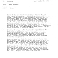A memo prepared by Gerry Thompson reporting to Governor Atiyeh on October 21, 1982. This report addresses topics including: Ted Kulongoski on the Salem taxi; Les Anderson on the SAIF investigation; the Council of Economic Advisors; Ed Anderson's talk show on Ted Kulongoski; and resolving housing market funds with the Oregon Association of Realtors (OAR). This is one document from a binder containing selected daily reports to the Governor, which was compiled by Gerry Thompson.