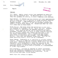 A memo prepared by Gerry Thompson reporting to Governor Atiyeh on November 30, 1982. This report addresses topics including: a gas tax proposal; Governor's campaign percentage; college and secondary school curriculum concerns; cheese distribution and the Tri-County Food Bank; the Comprehensive Employment and Training Act (CETA) to the Job Training Partnership Act (JTPA). This is one document from a binder containing selected daily reports to the Governor, which was compiled by Gerry Thompson.