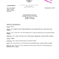 A document prepared by the State Capitol on December 23, 1982 that lists Governor Atiyeh's tentative schedule dating from December 27, 1982 through January 2, 1983. Governor Atiyeh is projected to meet with Capital workers and state agency heads. Agency heads include: the Department of Human Resources Director; Attorney General ; Health Planning and Development Agency Director; Department of Education Superintendent; Educational Coordinating Commission Executive Director; Workers Compensation Department Director; Department of Veterans Affairs; Department of General Services; Executive Department Emergency Management Division Administrator. This is one document from a binder containing selected daily reports to the Governor, which was compiled by Gerry Thompson.