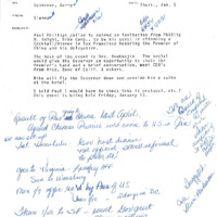 A memo prepared by Glenna Hayden, Governor Atiyeh's secretary, reporting to Governor Atiyeh and Gerry Thompson on January 5, 1984. This memo includes more information about Nike Corp. flying Governor Atiyeh for a cocktail/dinner in San Francisco to honor the Premier of China on January 13, 1984. This is one document from a binder containing selected daily reports to the Governor, which was compiled by Gerry Thompson.