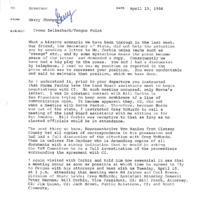 A daily memo prepared by Gerry Thompson reporting to Governor Atiyeh on April 10, 1984. Topics addressed in this memo include: Land Board negotiations amongst staff and members; T&E Committee agreement with Crown Zellerbach (CZ); acquisition of Tongue Point site including values and fiscal impacts; job creation and preservation with CZ arrangement. This is one document from a binder containing selected daily reports to the Governor, which was compiled by Gerry Thompson.