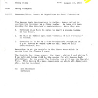 A memo prepared by Gerry Thompson on August 14, 1984 reporting to Denny Miles, Press Secretary. This memo includes confirmation that Gov. Atiyeh is the floor leader for the Republican National Convention (RNC) along with instructions for his role. This is one document from a binder containing selected daily reports to the Governor, which was compiled by Gerry Thompson.