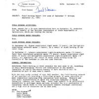 A memo by Fred Hansen, director of the Oregon Department of Environmental Quality, reporting to Governor Atiyeh on September 27, 1984. Topics reported in this memo include lash burning smoke problems in Eugene, and other general information covering meteorological factors and dry weather concerns. Attached is a field burning summary on the smoke concentration from residential wood heating in Salem, Corvallis, Lebanon, and Sweet Home. This is one document from a binder containing selected daily reports to the Governor, which was compiled by Gerry Thompson.