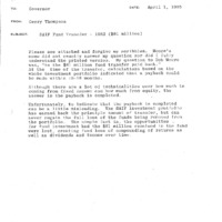 A memo prepared by Gerry Thompson to Governor Atiyeh on April 1, 1985. This memo addresses the completed payback of the $81 million fund transfer to SAIF, Oregon's not-for-profit workers' compensation insurance company. Although completed, the SAIF investment portfolio created fund loss of returns, dividends, and income. This is one document from a binder containing selected daily reports to the Governor, which was compiled by Gerry Thompson.