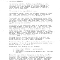 A campaign plan prepared by Sharon Page addressing topics in preparation for Governor Atiyeh's 1982 election. Topics addressed in this campaign plan include: Don Clark and Ted Kulongoski opposition; speeches and campaign volunteers; Operation Grassroots recruitment; County Chairmen; and press release strategies. This is one document from a binder containing selected daily reports to the Governor, which was compiled by Gerry Thompson.