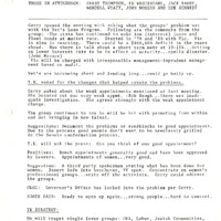 A memo on notes from a meeting that took place on May 6, 1982. Attendees at the meeting included: Gerry Thompson, Ed Westerdahl, Jack Faust, Wendell Wyatt, John Mosser, and Ede Schmidt. Topics addressed during this meeting included: the Vet's Loan Program; Ted Kulongoski (TK) on OEA, Labor, Jewish Communities, ACLU; Three Mile Island cleanup; and highlighting Gov. Atiyeh's impact in business, gun control and minority groups. This is one document from a binder containing selected daily reports to the Governor, which was compiled by Gerry Thompson.