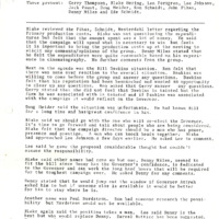 A memo on the conversations discussed leading to the primary election that took place on May 25, 1982. Topics addressed by the Re-elect Victor Atiyeh Executive Committee include: primary production costs; Lee Johnson and Denny Miles involvement in campaign, in-depth probe survey; Ted Kulongoski vs Packwood race; Ford visit; Executive Committee retreat at Gearhart; Paul Newman; position papers and a media campaign with the Tourism and Economic Development money. This is one document from a binder containing selected daily reports to the Governor, which was compiled by Gerry Thompson.