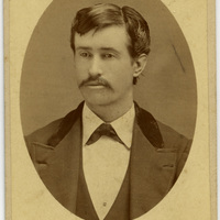 Portrait of a man, possibly connected to Pacific University, or possibly a person of mixed Native American heritage. The Buchtel & Stolte studio in Portland. Based on the dates of activity of this studio, the photograph was most likely taken between about 1875-1880 (see: Robinson, Oregon Photographers, 1993, p. 101-107, 617).