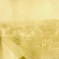 A photograph of an unidentified town, taken from a balcony. This photograph was found in an album labelled "Photones", which is part of the Charles Lovell and Winnette Sears Walker Collection. Winnette was a 1906 alumna of Linfield College. Charles was an alumnus of Tualatin Academy who later became a musician and an insurance agent in Hillsboro, Oregon.