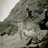 Three men at a rocky beach
