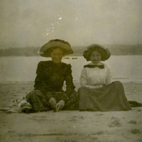 - Two unidentified women sit at a beach, probably in Oregon. This photograph is part of the Charles Lovell and Winnette Sears Walker Collection. Winnette was a 1906 alumna of Linfield College. Charles was an alumnus of Tualatin Academy who later became a musician and an insurance agent in Hillsboro, Oregon.