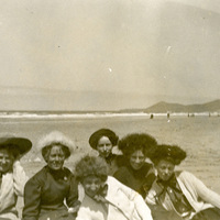 - Six unidentified women pose at a beach, probably in Oregon.This photograph is part of the Charles Lovell and Winnette Sears Walker Collection. Winnette was a 1906 alumna of Linfield College. Charles was an alumnus of Tualatin Academy who later became a musician and an insurance agent in Hillsboro, Oregon.