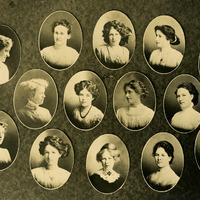 A series of class portraits, possibly Linfield College music students. The woman on the bottom right is Winnette Sears. This photograph is part of the Charles Lovell and Winnette Sears Walker Collection. Winnette was a 1906 alumna of Linfield College. Charles was an alumnus of Tualatin Academy who later became a musician and an insurance agent in Hillsboro, Oregon.