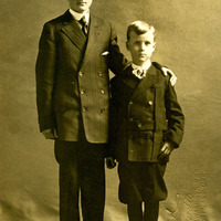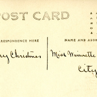 A portrait of two unidentified boys. This photograph was taken by Portland Studio in Portland, Oregon. It is printed on postcard stock and includes a brief note, "A Merry Christmas" addressed to Miss Winnette Sears. This photograph is part of the Charles Lovell and Winnette Sears Walker Collection. Winnette was a 1906 alumna of Linfield College. Charles was an alumnus of Tualatin Academy who later became a musician and an insurance agent in Hillsboro, Oregon.