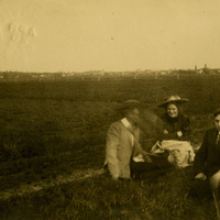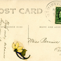 Winnette Sears (probably left most woman) and her companions, whom she calls "the Ohere String", pose for "a morning picture". It is printed on postcard stock and includes a brief note from Winnette Sears to her sister Bernice Sears. It is postmarked April 26, 1909. This photograph was probably taken in or near McMinnville, Oregon. This photograph is part of the Charles Lovell and Winnette Sears Walker Collection. Winnette was a 1906 alumna of Linfield College. Charles was an alumnus of Tualatin Academy who later became a musician and an insurance agent in Hillsboro, Oregon.