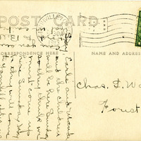 A photograph of City Park in McMinnville, Oregon. This photograph is printed on postcard stock and includes a brief note from Winnette Sears Walker to "Chas L. Walker". It is postmarked 1913. This photograph is part of the Charles Lovell and Winnette Sears Walker Collection. Winnette was a 1906 alumna of Linfield College. Charles was an alumnus of Tualatin Academy who later became a musician and an insurance agent in Hillsboro, Oregon.