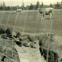 - Pigs and cows wander in a fenced field, probably in Oregon. This photograph is part of the Charles Lovell and Winnette Sears Walker Collection. Winnette was a 1906 alumna of Linfield College. Charles was an alumnus of Tualatin Academy who later became a musician and an insurance agent in Hillsboro, Oregon.