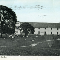 The old Auditorium in City Park in McMinnville, Oregon. This photograph is printed on postcard stock and includes a note to "Mrs Charles Walker". It is postmarked November 22, 1913. This photograph is part of the Charles Lovell and Winnette Sears Walker Collection. Winnette was a 1906 alumna of Linfield College. Charles was an alumnus of Tualatin Academy who later became a musician and an insurance agent in Hillsboro, Oregon.