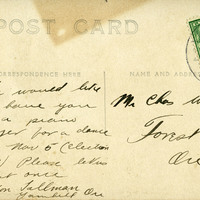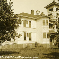 A photograph of a public school in North Yamhill, Oregon. This photograph is printed on postcard stock and includes a brief note to "Mr Chas Walker". It is postmarked October 27, 1912. This photograph is part of the Charles Lovell and Winnette Sears Walker Collection. Winnette was a 1906 alumna of Linfield College. Charles was an alumnus of Tualatin Academy who later became a musician and an insurance agent in Hillsboro, Oregon.