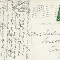 A photograph of a drive way near McMinnville, Oregon. This photograph is printed on postcard stock and includes a note from "Freda" to "Mrs. Charles L. Walker". This photograph is part of the Charles Lovell and Winnette Sears Walker Collection. Winnette was a 1906 alumna of Linfield College. Charles was an alumnus of Tualatin Academy who later became a musician and an insurance agent in Hillsboro, Oregon.