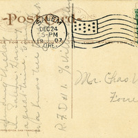 A postcard depicting the State Penetentiary is Salem, Oregon. It includes a brief note to "Mr. Chas. Walker" and is postmarked December 24, 1907. This postcard is part of the Charles Lovell and Winnette Sears Walker Collection. Winnette was a 1906 alumna of Linfield College. Charles was an alumnus of Tualatin Academy who later became a musician and an insurance agent in Hillsboro, Oregon.