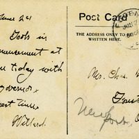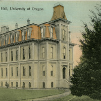 A postcard depicting Deady Hall at the University of Oregon in Eugene, Oregon. It includes a note to "Mr. Chas. Walker" and is postmarked June 2nd. This postcard is part of the Charles Lovell and Winnette Sears Walker Collection. Winnette was a 1906 alumna of Linfield College. Charles was an alumnus of Tualatin Academy who later became a musician and an insurance agent in Hillsboro, Oregon.