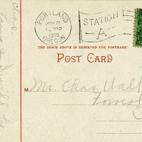A postcard depicting Fifth Street and the Post Office in Portland, Oregon. It includes a note to Charles Walker from "Eva". It is postmarked November 6, 1908. This postcard is part of the Charles Lovell and Winnette Sears Walker Collection. Winnette was a 1906 alumna of Linfield College. Charles was an alumnus of Tualatin Academy who later became a musician and an insurance agent in Hillsboro, Oregon.