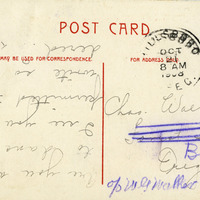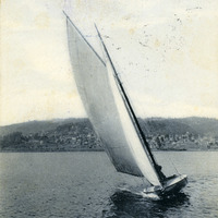 A postcard depicting a person using a sailing yacht on the Willamette River near Portland, Oregon. It includes a brief note to Charles Walker from "T.S.W.". It is postmarked October 21, 1908. This postcard is part of the Charles Lovell and Winnette Sears Walker Collection. Winnette was a 1906 alumna of Linfield College. Charles was an alumnus of Tualatin Academy who later became a musician and an insurance agent in Hillsboro, Oregon.