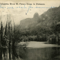 A postcard depicting the Columbia River with St. Peters Dome, Oregon in the distance. It includes a note from "Eva" to Charles Walker. This postcard is part of the Charles Lovell and Winnette Sears Walker Collection. Winnette was a 1906 alumna of Linfield College. Charles was an alumnus of Tualatin Academy who later became a musician and an insurance agent in Hillsboro, Oregon.