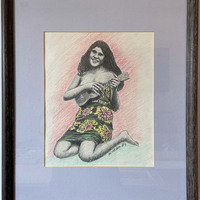 - Small, open edition print of a Hawaiian girl playing a ukelele, signed "Rivera '89." Framed.
