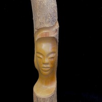 A Hawaiian folk art-style carved sculpture of a woman's head, made from a slender log of tamarind wood. Signed on the bottom "N. Furukawa" and pencilled on the top, "tamarind." This is one of a group of similar carvings of women's heads made in Hawaii probably between 1950-1990. Approx. 12" x 2.75" x 2.75".