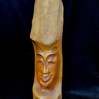 A Hawaiian folk art-style carved sculpture of a woman's head, made from milo wood. Signed on bottom: "Milo wood. Drift wood found in the Island of Hawaii. Made in Hawaii. Aloha. Murial. May 8, 1964. New York's World Fair." This is one of a group of similar carvings of women's heads made in Hawaii probably between 1950-1990. This carving was apparently made in Hawaii, but sold as a souvenir at the Hawaii exhibit of New York World's Fair in 1964. Approx. 14.5" x 4.5" x 4.5".