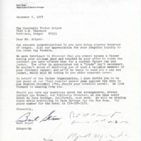 - A letter to Victor Atiyeh from Green Bay Packers coach and former player, Bart Starr. In the letter Starr congratulates Atiyeh on being elected Oregon Governor and extends an invitation for Atieyh to attend the Green Bay Packers and Los Angeles Rams game on December 17, 1978.