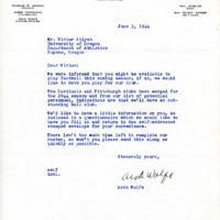 A letter to Victor Atiyeh from the Chicago Cardinals football team. In the letter, the Cardinals ask Atiyeh to answer some questions as they are interested in having Atiyeh play for their team. The Chicago Cardinals were established in 1898 and remained in Chicago until 1959. The team moved several times between 1959 and 1993, before settling Phoenix, Arizona. They have been known as the Arizona Cardinals since 1993.