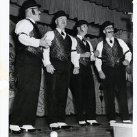 This is one photograph from a collection on the Gay Nineties festival and the the Original All-Northwest Barbershop Ballad Contest in Forest Grove, Oregon. The festival centered around a theme of nostalgia for the 1890s decade. The event, which ran from 1947 through the 1990s, featured a parade downtown, residents dressing up in 1890s-themed costumes for the celebrations, local businesses decorating their window displays, and the crown jewel of the event, the Original All-Northwest Barbershop Ballad Contest, which earned Forest Grove the nickname "Ballad Town U.S.A."