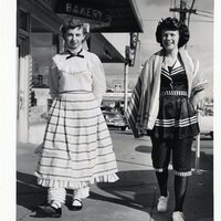 This is one photograph from a collection on the Gay Nineties festival and the the Original All-Northwest Barbershop Ballad Contest in Forest Grove, Oregon. The festival centered around a theme of nostalgia for the 1890s decade. The event, which ran from 1947 through the 1990s, featured a parade downtown, residents dressing up in 1890s-themed costumes for the celebrations, local businesses decorating their window displays, and the crown jewel of the event, the Original All-Northwest Barbershop Ballad Contest, which earned Forest Grove the nickname "Ballad Town U.S.A."