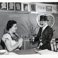 This is one photograph from a collection on the Gay Nineties festival and the the Original All-Northwest Barbershop Ballad Contest in Forest Grove, Oregon. The festival centered around a theme of nostalgia for the 1890s decade. The event, which ran from 1947 through the 1990s, featured a parade downtown, residents dressing up in 1890s-themed costumes for the celebrations, local businesses decorating their window displays, and the crown jewel of the event, the Original All-Northwest Barbershop Ballad Contest, which earned Forest Grove the nickname "Ballad Town U.S.A."