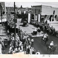 This is one photograph from a collection on the Gay Nineties festival and the the Original All-Northwest Barbershop Ballad Contest in Forest Grove, Oregon. The festival centered around a theme of nostalgia for the 1890s decade. The event, which ran from 1947 through the 1990s, featured a parade downtown, residents dressing up in 1890s-themed costumes for the celebrations, local businesses decorating their window displays, and the crown jewel of the event, the Original All-Northwest Barbershop Ballad Contest, which earned Forest Grove the nickname "Ballad Town U.S.A."