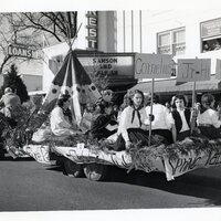 This is one photograph from a collection on the Gay Nineties festival and the the Original All-Northwest Barbershop Ballad Contest in Forest Grove, Oregon. The festival centered around a theme of nostalgia for the 1890s decade. The event, which ran from 1947 through the 1990s, featured a parade downtown, residents dressing up in 1890s-themed costumes for the celebrations, local businesses decorating their window displays, and the crown jewel of the event, the Original All-Northwest Barbershop Ballad Contest, which earned Forest Grove the nickname "Ballad Town U.S.A."