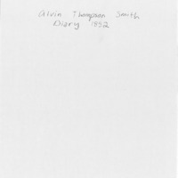 A transcription of a 1852 diary in which Alvin Thompson Smith writes about topics such as his daily life living on the increasingly populated Tualatin Plains; his farmwork; his business ventures and religious life; his contributing efforts to the Tualatin Academy; his trips to Portland, Hillsboro (which he spells as "Hillsborough"), various saw mills, Oregon City, and Fort Vancouver; his interactions with John S. Griffin, a Mr. Mulkey, William Geiger, a Mr. Young, Henry Davis, Cushing Eells, the Naylor family, Caleb Smith, George Blish, Elam Young, a Mr. Hammond, a Mr. Doran, his wife Abigail (who he refers to as "Mrs. Smith), Darius Smith, Eli Perkins, Henry Spalding, Patrick Cain, F. W. Brown, Elkanah Walker, Matthew Hunter, J. T. Reed, a Mr. B. Hoen, a Mr. Nusbaumer, a Mr. Jolly, William Catching, a Mr. Hatch, Joseph Davis, a Mr. Tuttle, a Mr. McMillen, Robert Crouch Kinney, and a Henry C. Raymond.