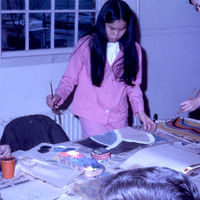 Pacific University students painting, possibly at an event hosted by Haumana O Hawai'i (Hawaiian Club) circa 1972-1973.