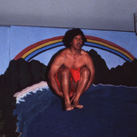 A man performs a jump during a performance on stage at Pacific University's annual Lu'au in 1982.