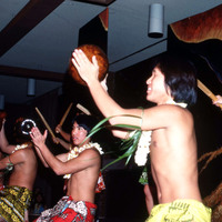 Dancers with ipu gourds at the 1976 Luau