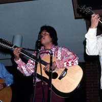 Three musicians, two of whom are singing, at Pacific University's annual Lu'au in 1976.