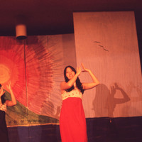 Two female Pacific University students performing the hula at the university's 1975 Lu'au. The photographer, Peg Osland, was on the staff of Pacific's publicity department.
