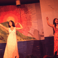 Pacific University students performing the hula on stage at the university's annual Lu'au in 1975. The photographer, Peg Osland, was on the staff of Pacific's publicity department.