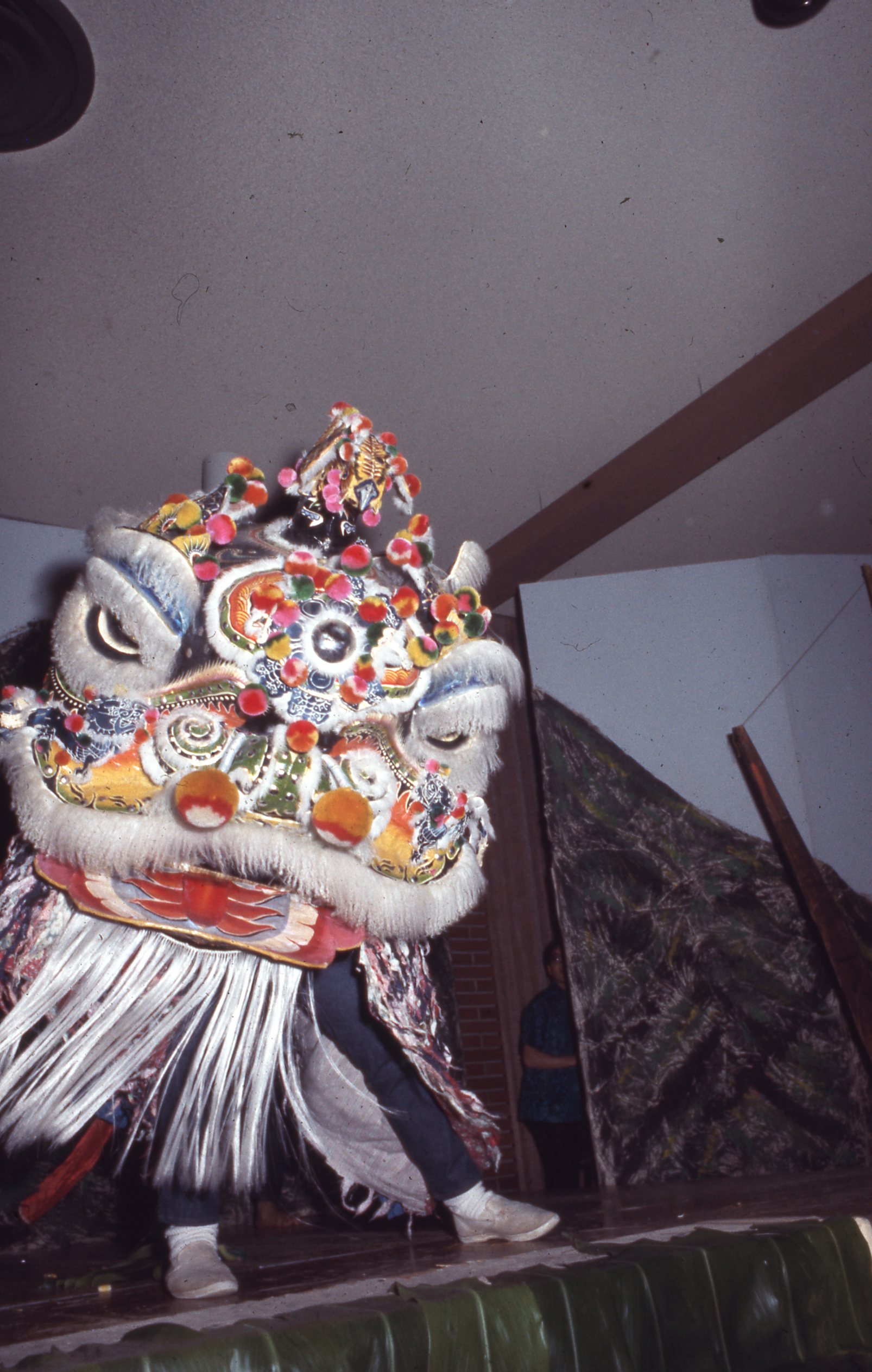 A Chinese dragon dance performance at Pacific University's annual Lu'au in 1968.
